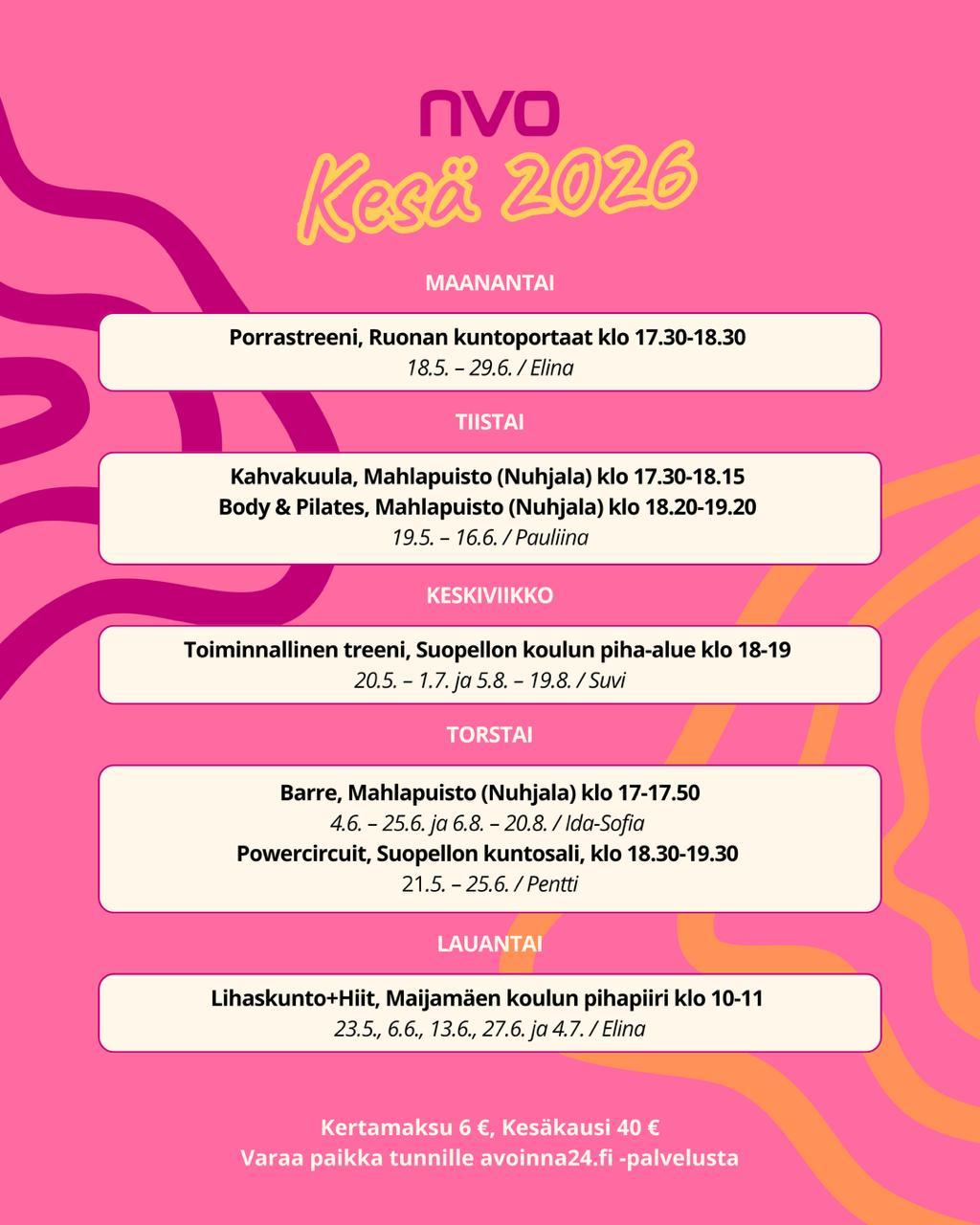 ☀️ Jos taas ilmoittaudut koko kesäkaudelle, käy ilmoittautumassa Hoika-jäsenrekisterin kautta. Saat laskun sähköpostiisi, ja sen jälkeen voit varata paikkoja ja osallistua vapaasti kaikille kesän tunneille.