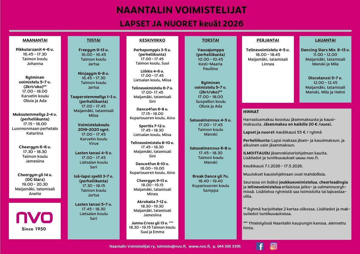 Kaikki alle 12-vuotiaiden ryhmät toimivat Voimistelukoulu-periaatteiden mukaisesti.